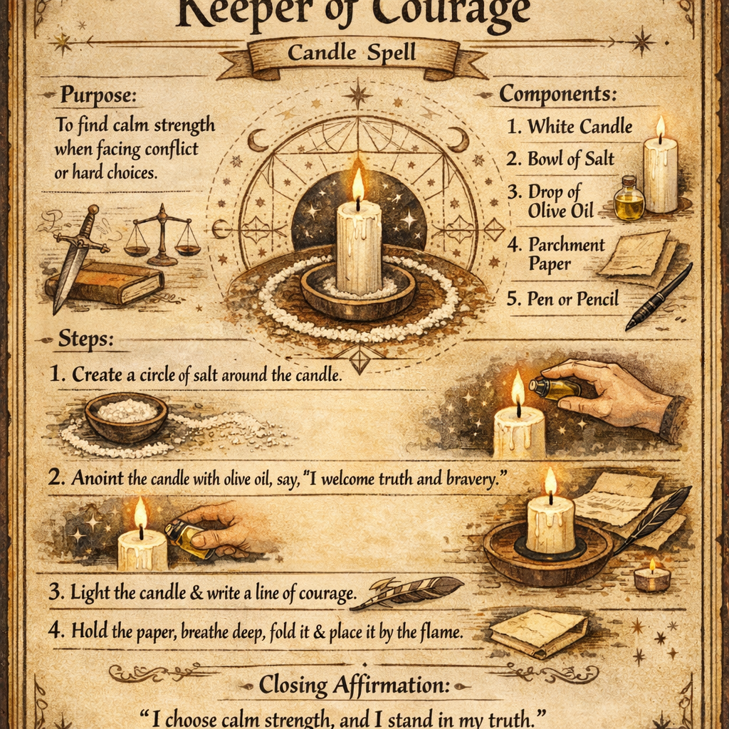 When shadows test your heart, light the Keeper of Courage candle. Salt grounds you, flame awakens resolve, and your written words become a vow of calm strength. Stand in your truth—fearless, steady, and shining within. 🕯️✨ #CandleSpell #InnerPower