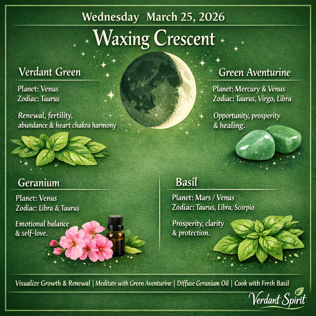 Today’s theme: Heart-Centered Renewal. Connect with Verdant Green, Green Aventurine, Geranium, and Basil to invite growth, harmony, and emotional balance. Details at wellofwhispers.com/today