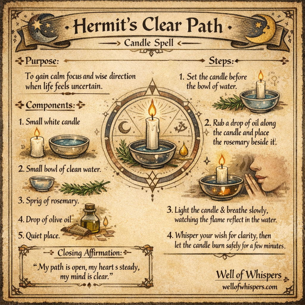 Hermit’s Clear Path kindles focus, calm, and quiet insight—guiding your next step with ancient simplicity.