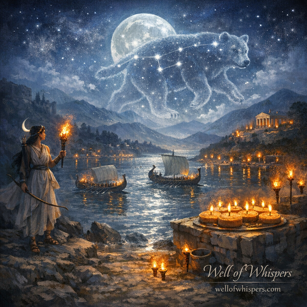 Bright full moon blessings on this Feast of Callisto and Mounikhia! May Artemis’ light and the Great Bear’s glow guide your heart toward wonder, courage, and renewal 🌕🐻