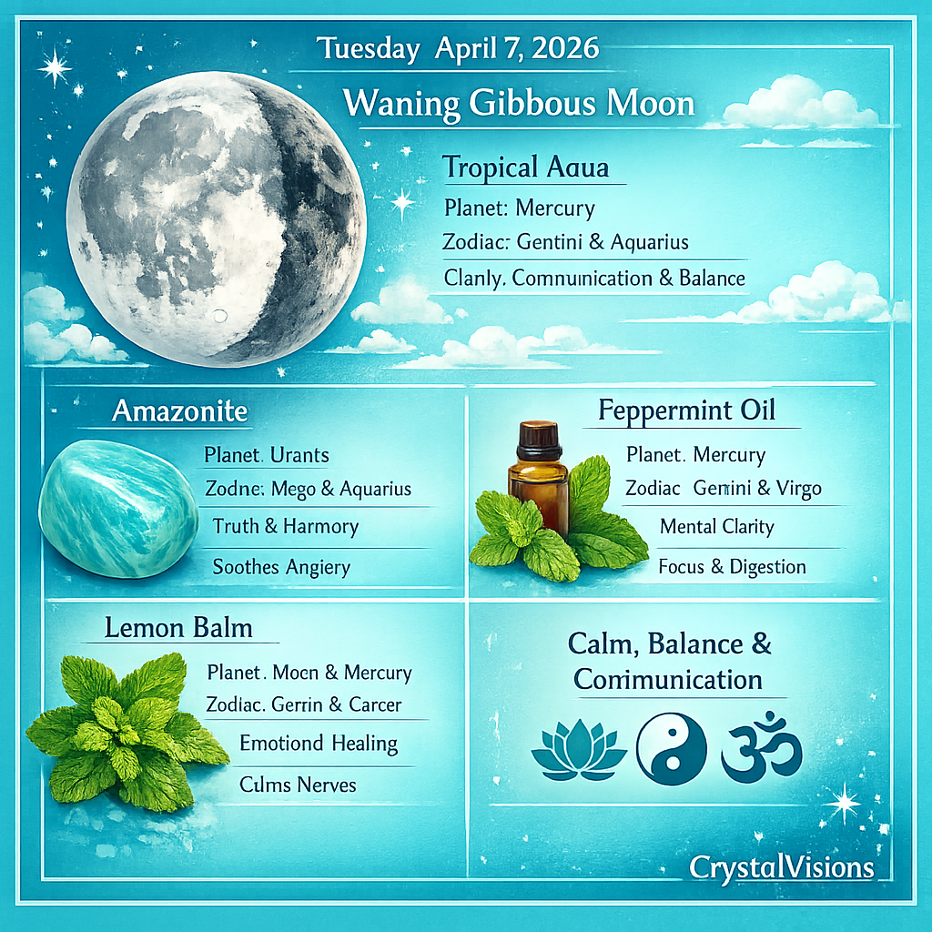Focus on calm communication, emotional balance, and mental renewal through Tropical Aqua, Amazonite, Peppermint, and Lemon Balm.