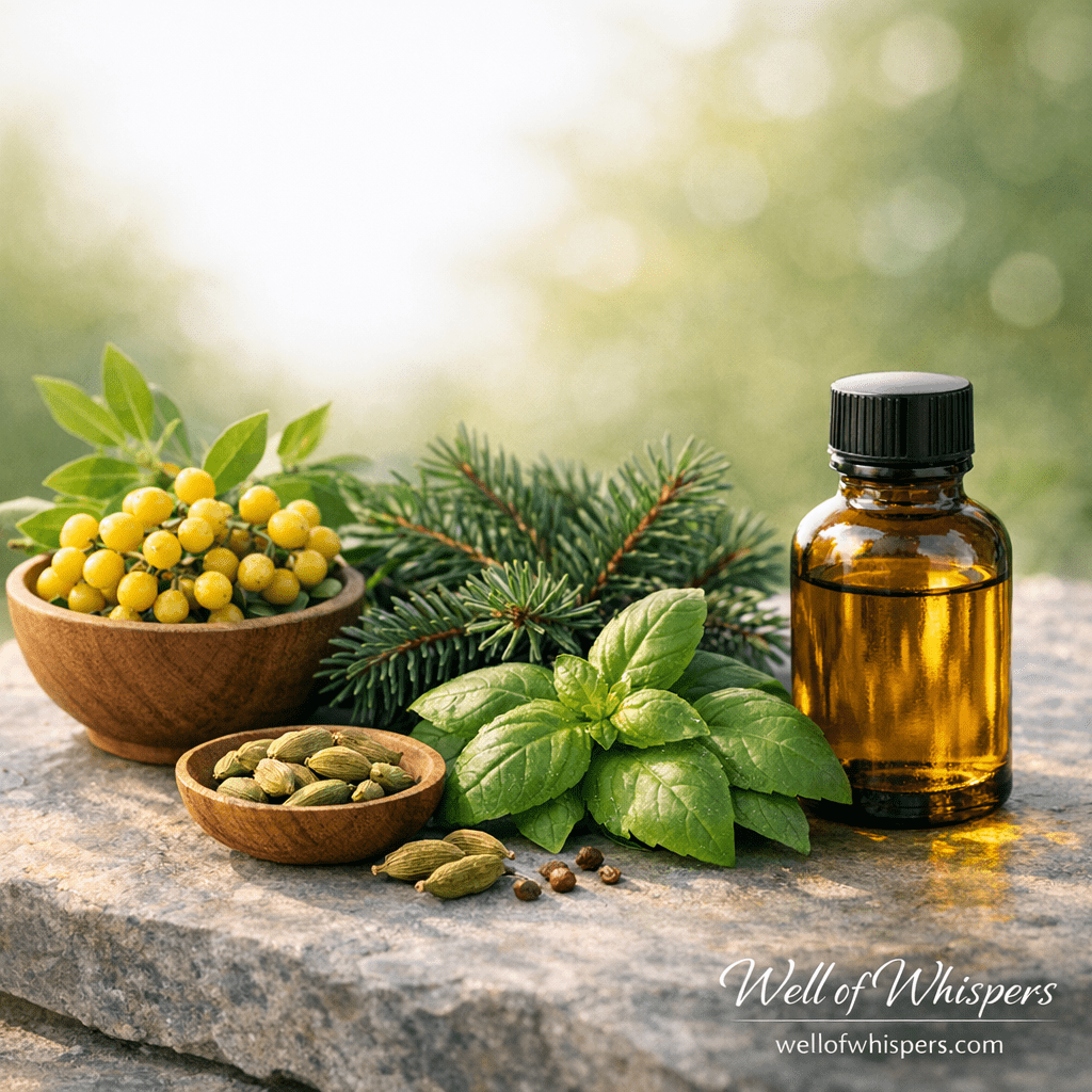 - Cardamom *(optional)* – Adds a warm, cleansing note that opens the lungs and steadies energy, complementing the other oils beautifully.